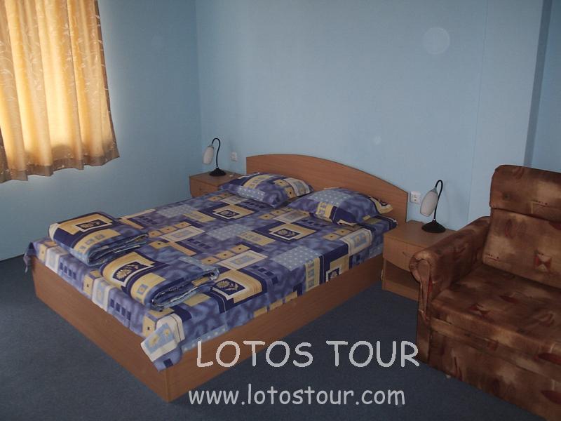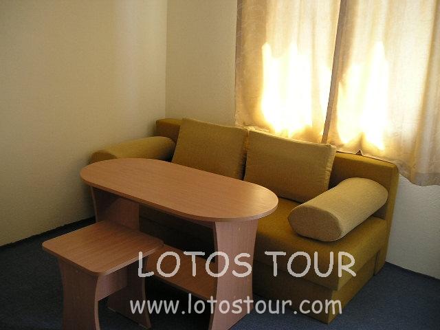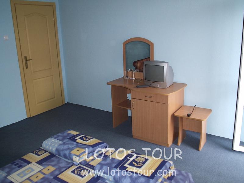 В номере- спутниковое ТВ, кондиционер с доплата, холодильник, санузел с душем, балкон, дополн.кровать.