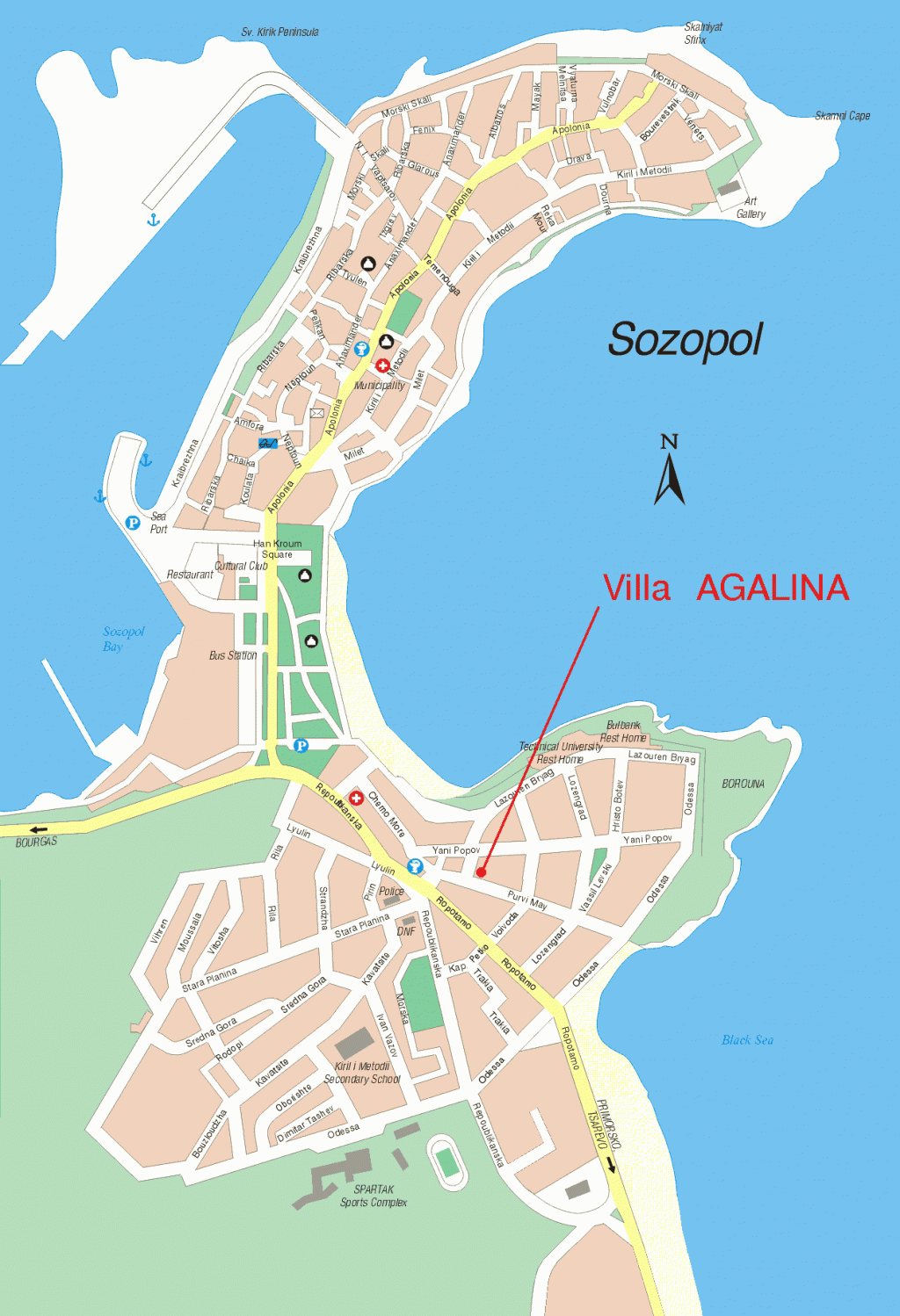 Вилла АГАЛИНА находится в центре Созопола в 100 метров от пляжа старого города и в 200 от пляже нового города.