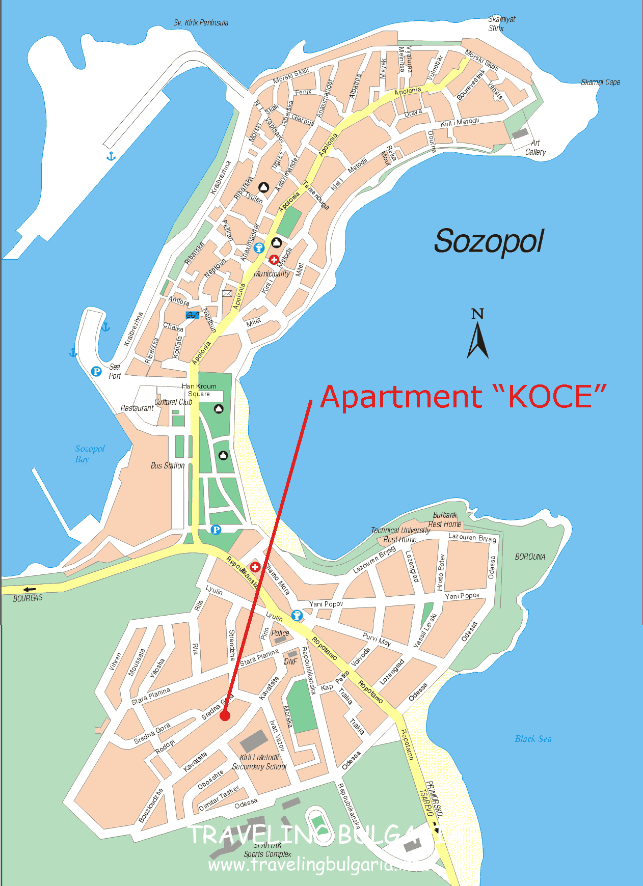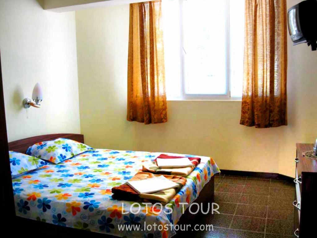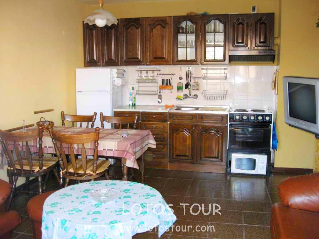 находится в новой части города в 200 м. oт центра и 350 м. oт пляжа. В апартаменте 2 двухместные комнаты с гостиной и кухней , душем , WC , верандой , холодильником и кабельным TV, кондиционер . Все номера выходят на улицу.