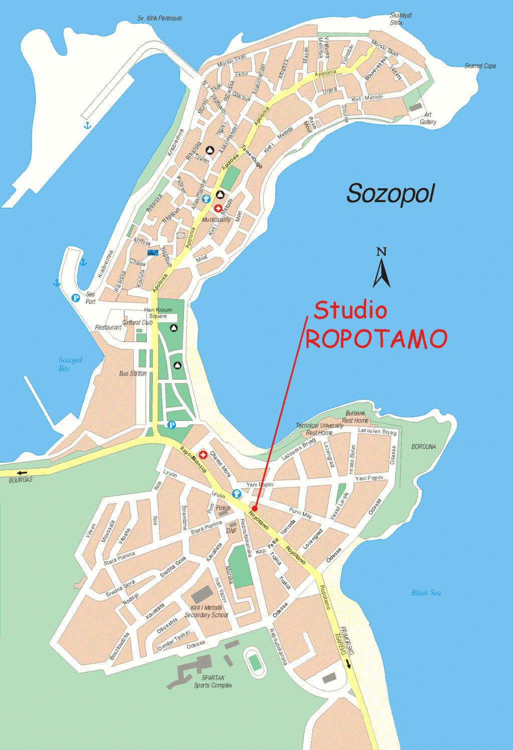 находится в центре новой части города в 60 м от пляжа. В студием есть